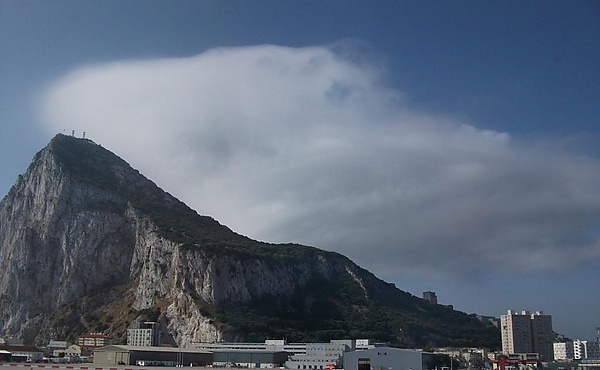 При подходящих условиях на подветренном склоне образуется характерное облако вымпело- или флагообразной формы. Из-за шлейфа турбулентности оно обычно простирается примерно на 5 км к западу от вершины Гибралтарской скалы. Это облако висит над центром Гибралтара, в то время как в нескольких километрах севернее или южнее обычно стоит солнечная погода. Подобные облака в форме флага или баннера иногда можно увидеть в других местах, в частности, на вершине горы Маттерхорн в Швейцарии[2].