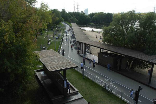 Парк-курорт площадью около 23,2 гектаров располагается между Прибрежным проездом и Химкинским водохранилищем. Изначально эта территория была обычной зеленой зоной с песчаным пляжем у воды и не имела особой инфраструктуры. В 2015 году территории присвоили статус народного парка, обустроили здесь дорожки для прогулок и установили скамейки[39]. В 2017—2018 годах у воды была обустроена курортная зона[40][41]. Вдоль берега водоема уложен деревянный настил, где могут гулять и загорать отдыхающие, а также установлены раздевалки, душевые и перголы-навесы от солнца. Рядом с пляжем располагается трехэтажный павильон с летним кафе и зонами для загара, а также зона для тихого отдыха с пуфами. Для детей рядом с пляжем обустроена игровая площадка в экостиле, а для спортсменов — воркаут-площадка, столы для игры в настольный теннис, а также площадка для игры в пляжный футбол и три волейбольные площадки с песком площадью 2000 кв. метров. В зеленой зоне парка располагается скейт-парк «Союз» для начинающих и продвинутых райдеров, а вдоль аллей проходит велодорожка длиной 2,4 км.