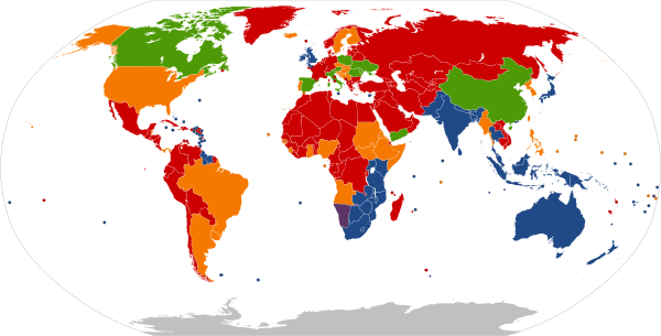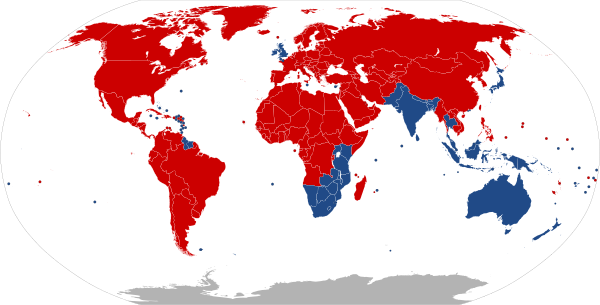 Из 193 стран 140 используют правостороннее движение, а 53 — левостороннее. Страны и их зависимые территории считаются заодно.