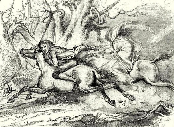 Однажды осенней ночью, когда Икабод возвращался с вечеринки у Ван Тасселов, его начал преследовать Всадник без головы, предположительно призрак гессенского кавалериста, которому оторвало голову шальным пушечным ядром в одной из «безымянных битв» войны за независимость США и который «ночью скачет на поле боя в поисках своей головы».