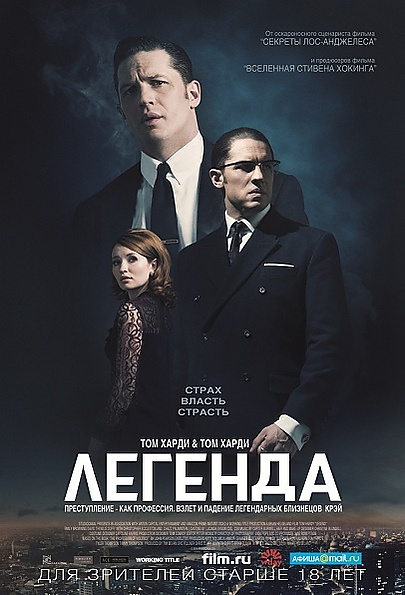 «Легенда»[3] (англ. Legend) — кинофильм британско-французского производства, поставленный американским режиссёром Брайаном Хелгелендом по мотивам книги Джона Пирсона «Искусство жестокости: взлёт и падение близнецов Крэй», основанный на реальных событиях. Автором сценария выступил сам Хелгеленд, что ознаменовало его возвращение к криминальному жанру первый раз со времён фильма «Секреты Лос-Анджелеса». Фильм рассказывает историю близнецов Крэй — Рональда и Реджинальда — гангстеров, терроризировавших Лондон в 60-х годах, о чьей жестокости и неуравновешенности ходили легенды. Сюжет охватывает период от начала их преступной карьеры до тюремного заключения в 1969 году[4][5]. Премьера в Великобритании — 9 сентября 2015 года, в России — 1 октября[3]. Фильм вышел на экраны в сентябре и побил рекорды традиционных бокс-офисов. Первый раз за историю английского кино «Легенда» собрала 5,18 миллионов фунтов (8 миллионов долларов) и вошла в список самых кассовых фильмов Англии[6].