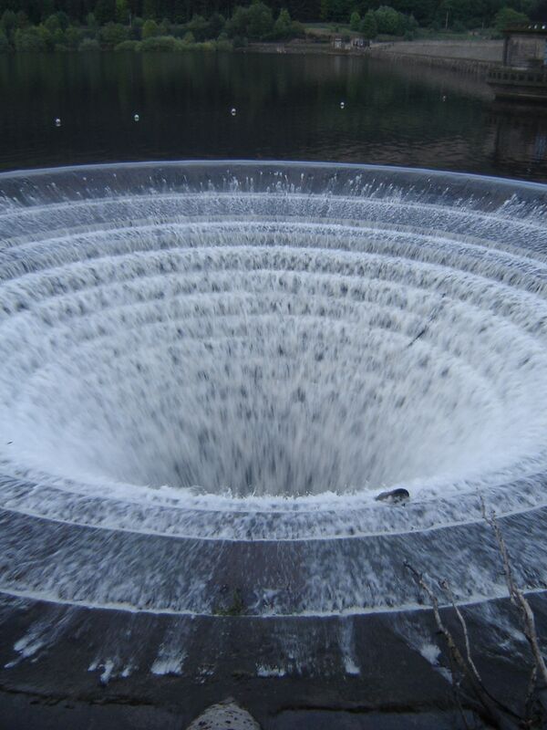 Воронки на водохранилище Ледибауэр представляют собой Y-образные резервуары или водосбросы. Когда резервуар водохранилища Ледибауэр заполнен (6,3 млрд галлонов), избыток воды стекает в два таких резервуара по 24 м и 4,6 м в диаметре. Длина большего резервуара составляет 4,8 км. Эти водосбросы находятся в графстве Дербишир, в центральной Англии. Воронки такой формы не единственные, но на водохранилище Ледибауэр находится самая большая на Земле.
