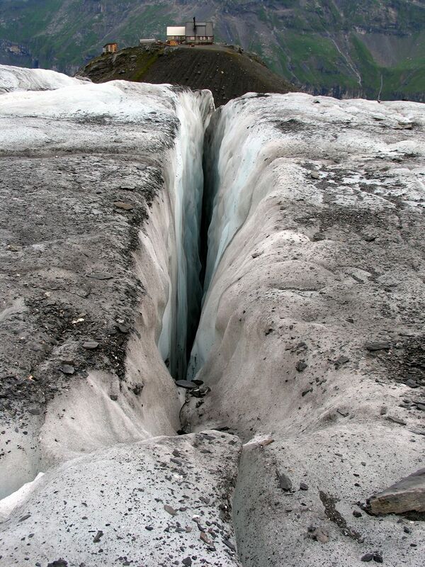 Для областей питания горных ледников характерны бергшрунды или, иначе, подгорные трещины, которые отделяют движущийся ледник от неподвижных масс снега, фирна и льда на склонах.