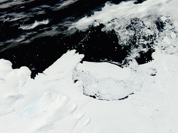 От ледовых языков регулярно откалываются фрагменты. Так, в 2006 году от языка Дригальского из-за столкновения с айсбергом отделился кусок размером 13×11 км[8], а в 2010 году удар айсберга отколол около половины языка ледника Мерца (78×39 км)[9].