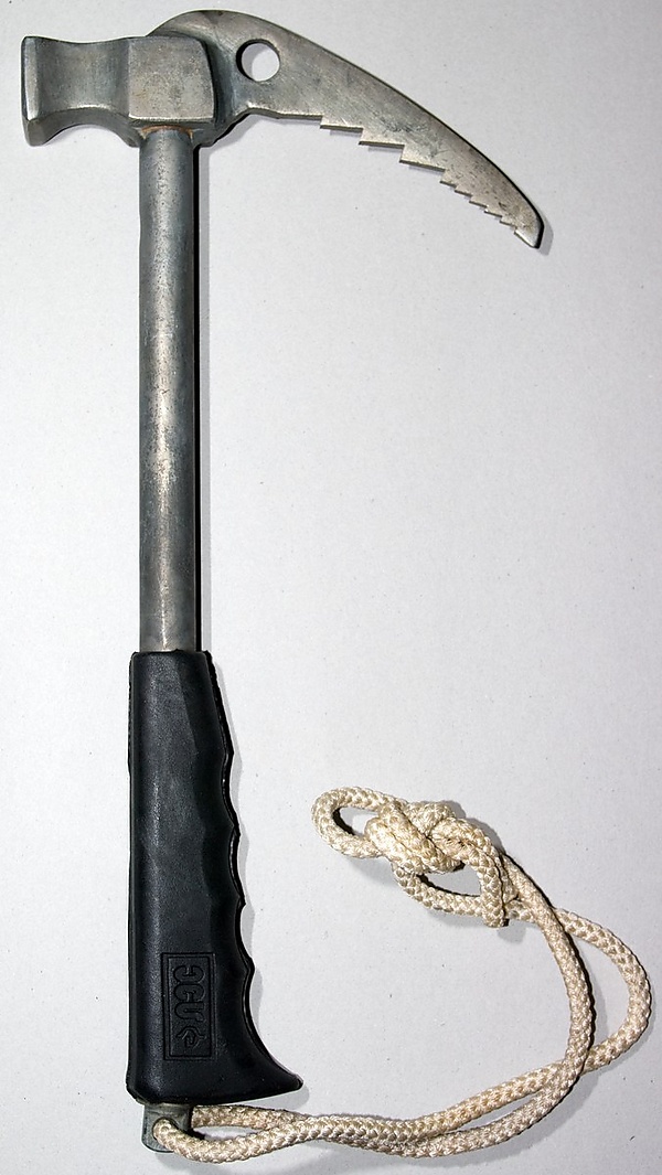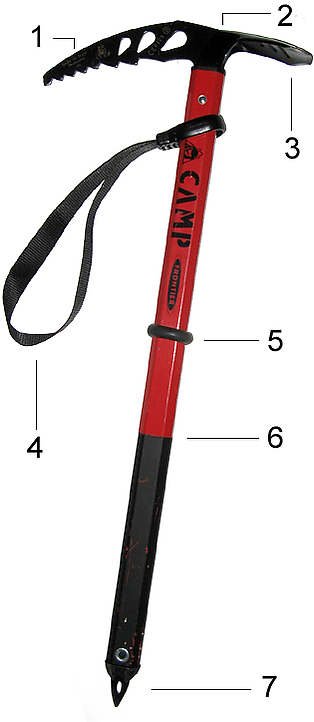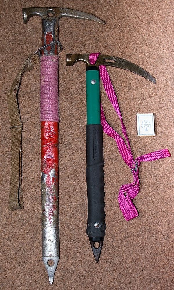 От ледового молотка айсбайль отличает меньший изгиб клюва, большая длина рукоятки и наличие штычка.
