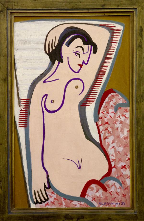 В работах Эрнста Людвига Кирхнера женское тело — это ещё и тело посланий, поскольку его изображение содержит буквы. Женщина становится книгой, из которой можно прочитать историю.