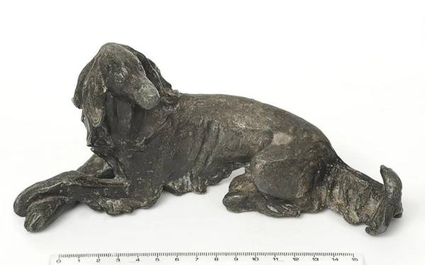 Скульптура изображает собаку породы Сеттер. Животное представлено в положении лёжа на брюхе. Передние лапы собаки скрещены. Туловище изогнуто в форме буквы «S». Голова повёрнута влево и слегка назад, что придаёт динамику изображению. Задние лапы видны с левого бока. Хвост расположен прямо, его конец поднят. Размер скульптуры составляет 8,5×19,5×7 см.