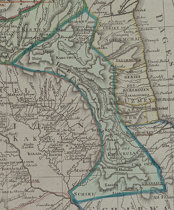 Со временем некоторые авторы стали по-разному обозначать территорию Дагестана: одну часть «Дагестаном», а другую «Лезгистаном»[14]. В «Известии…» Гербера фигурируют Дагестан (верхний и нижний) и Лезгистан[12]. По сведениям, собранным среди кубинцев в 1830-х годах, Кубинская провинция делилась на две части: «заключающаяся между реками Самуром и Кудиалом называется Лезгистаном», а та часть, что от Кудиала и далее в горы — Туркистаном[15]. Будухский и часть Ханалыгского магалов ввиду горного положения именовались Дагестаном[15].