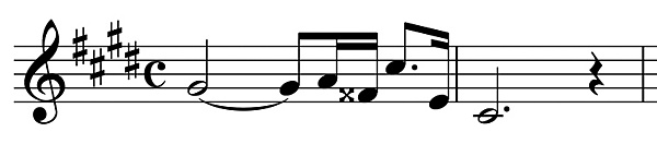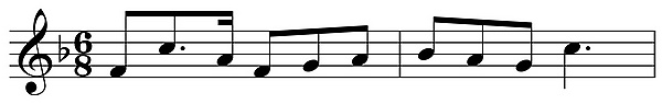 - В серии фильмов Челюсти основной «акульий» мотив, написанный Джоном Уильямсом в 1975 году, представляет собой напряжённый лейтмотив — простую череду двух нот, ми и фа[13].