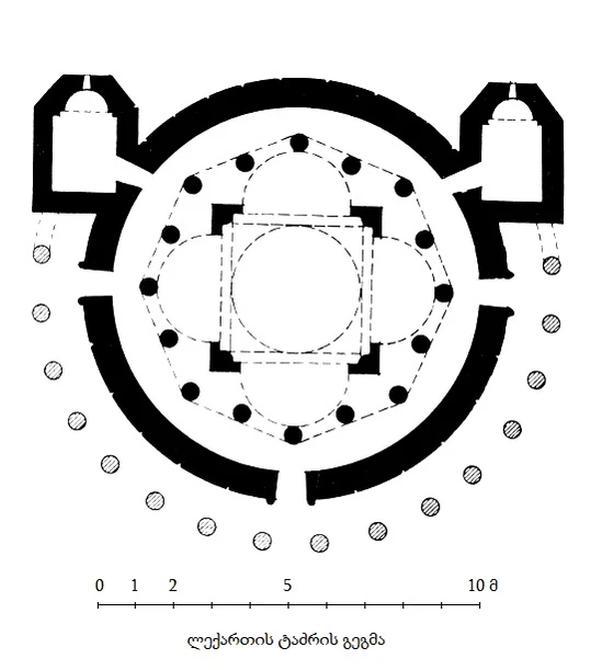 На расстоянии одного километра от Лекита находится круглый в плане храм VII века[7][8]. Архитектура храма представляет собой небольшой тетраконх с экседрами на аркатуре (по три колонны в экседре), окружённый кольцевым обходом с круглой внешней стеной. Обнаружен Александром Хахановым в 1890-х годах[9]. Описан после расчистки в 1940 году Петром Барановским[10][11]. Находился в руинах[12]. По реконструкции, предложенной Степаном Мнацаканяном, — трёхъярусный[7].