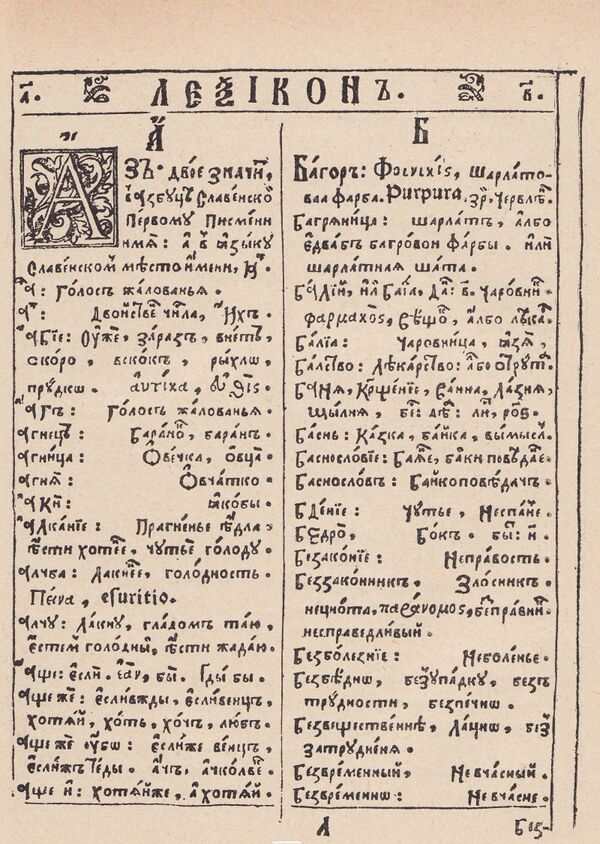 Реестр «Лексикона славеноросского» подобран по дифференциальному принципу: специфические церковнославянские слова и общеславянские лексемы, которые архаизировались в западнорусском языке конца XVI — начала XVII веков.