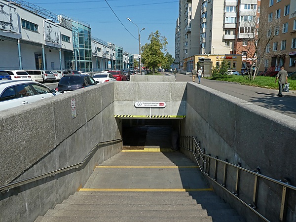 Павильоны отсутствуют, вход на станцию совмещён с подуличными пешеходными переходами, имеющими выходы на Ленинский проспект и бульвар Новаторов. Из-за мелкого заложения станции в обоих вестибюлях отсутствуют эскалаторы.