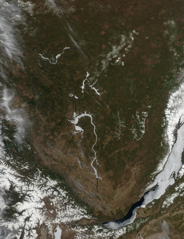 Плато отделено от прибайкальских хребтов так называемой Предбайкальской впадиной, ширина которой достигает 100 км.