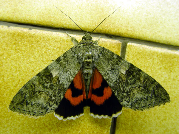 Длина переднего крыла — 30—38 мм. Размах крыльев 61—94 мм[2]. Передние крылья покровительственной окраски — серого цвета с множеством волнистых поперечных линий и полос, образующих сложный рисунок. Бахрома передних крыльев окрашена в тон крыла. Почковидное пятно бурого цвета, окружено растушеванным тёмно-бурым. Задние крылья оранжево-красного, с чёрной широкой каймой и чёрной перевязью, довольно сильно изогнутой в средней части. Бахрома задних крыльев — белая.