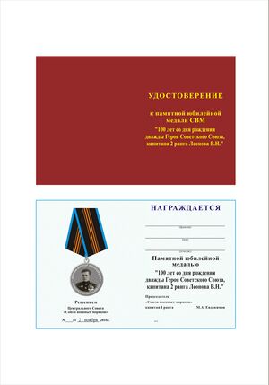 - В 2016 году к 100-летию со дня рождения «Союзом Военных Моряков» была учреждена и выпущена памятная юбилейная медаль «100 лет со дня рождения дважды Героя Советского союза капитана 2 ранга Леонова В. Н.».