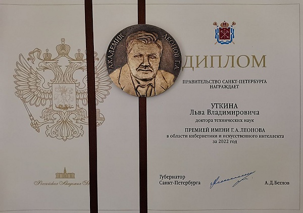 14 января 2021 года на встрече с высокоцитируемыми учеными и ректором СПбГУ губернатор Санкт-Петербурга А.Д. Беглов поддержал инициативу учреждения ежегодной городской премии в области кибернетики и искусственного интеллекта имени Г.А. Леонова[18][19][20]. В 2022 году был объявлен конкурс на соискание премии Правительства Санкт-Петербурга и Санкт-Петербургского центра РАН в области кибернетики и искусственного интеллекта имени Г. А. Леонова, первым лауреатом которой стал профессор Л. В. Уткин[21][22].