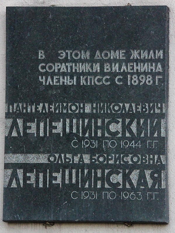 Интересно, что муж Лепешинской, старый большевик П. Н. Лепешинский, к научным изысканиям своей супруги относился критически и, по свидетельству Я. Л. Раппопорта, в частных разговорах отзывался о них так: «Вы её не слушайте; она в науке ничего не смыслит и говорит сплошные глупости»[9].