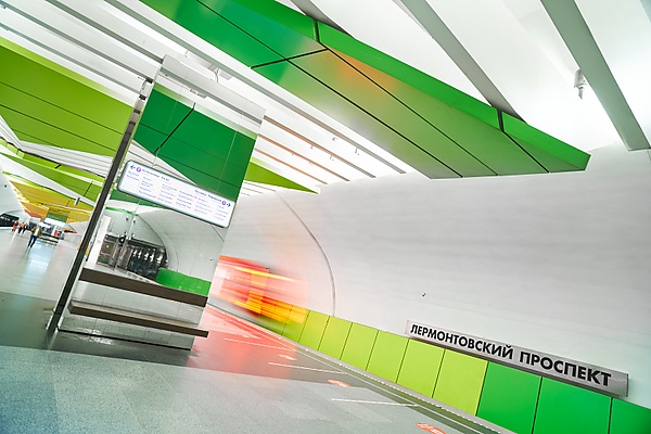 Станция «Лермонтовский проспект» — односводчатая станция мелкого заложения. Её оформление выполнено в жёлто-зелёных тонах[5].