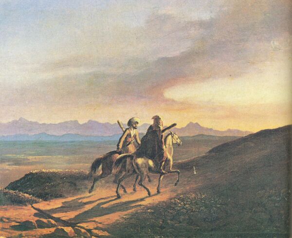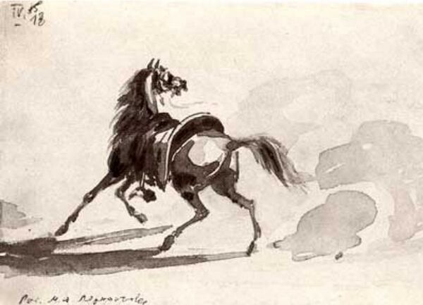 Лермонтов боится сам подвергнуться такой участи; более чем когда-либо он прячет свои задушевные думы от людей, вооружается насмешкой и презрением, подчас разыгрывает роль доброго малого или отчаянного искателя светских приключений. В уединении ему припоминаются кавказские впечатления — могучие и благородные, ни единой чертой не похожие на мелочи и немощи утончённого общества.