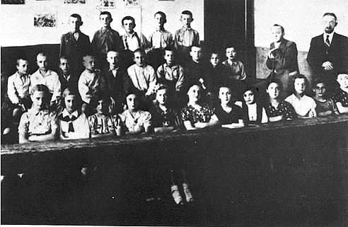 - Групповая фотография: Слева направо литераторы: Герш-Лейб Вайнштейн-Кажбер, Йосл Лернер, С. А. Софер, Нафтоли-Герц Кон.