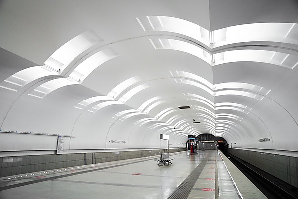 Покрытие станции выполнено в виде трёхчастного свода, геометрия которого подчёркнута спаренными световыми нишами. По центральной оси платформы размещаются скамьи и торшеры-указатели.