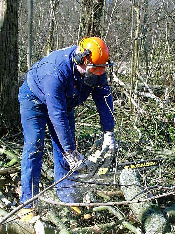 Перед валкой дерева вокруг него убирается кустарник или снег. Лесоруб валит деревья в просветы между другими деревьями или в места, свободные от леса, так как валить дерево на стену леса нельзя. Деревья диаметром более 8 см приземляются в сторону естественного наклона ствола, направления ветра или наибольшей массы кроны (с предварительным подпилом дерева). После того, как дерево повалено, обрубаются ветви: от комля к вершине, при этом лесоруб стоит с противоположной от ветки стороны ствола. Напряжённые сучья обрубаются после того, как удалены все соседние. Если дерево находится на склоне (вдоль склона крутизной 20° и более и поперек склона крутизной 15° и выше), то его закрепляют, прежде чем рубить ветви, а лесоруб стоит с нагорной стороны. Запрещается рубить ветви, стоя на поваленном дереве или оседлав его. После этого стволы укладываются в штабеля.