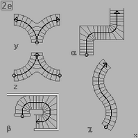 - n) трёхмаршевая дугообразная S-образная лестница с двумя четвертьплощадками