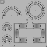 - w) двухмаршевая двойная винтовая лестница