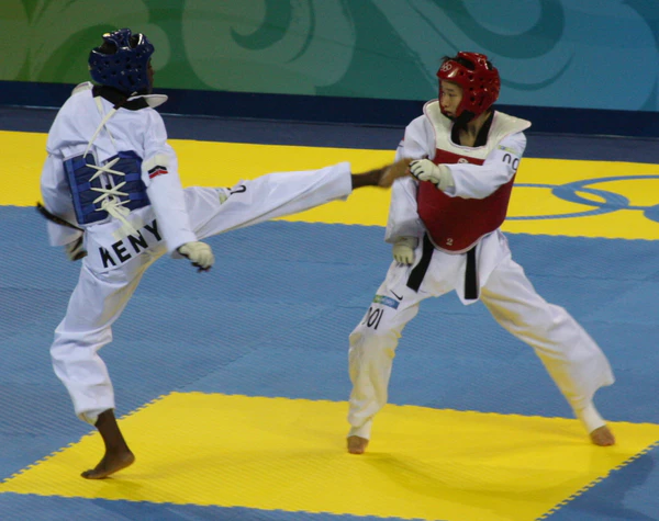 Соревнования по тхэквондо на играх проходили с 20 по 23 августа во Дворце спорта Пекинского научно-технологического университета. 128 спортсменов из 64 стран разыграли восемь комплектов медалей, по четыре среди мужчин и женщин. Лучшего результата добились спортсмены сборной Южной Кореи, выигравшие четыре золотые награды, следом за ними расположились представители Мексики, завоевавшие две золотые медали. Турнир тхэквондистов был омрачён скандалом. В поединке за третье место между кубинцем Анхелеа Матосом и казахским спортсменом Арманом Чилмановым при счёте 3:2 в свою пользу кубинец получил травму и попросил медицинской помощи. По правилам тхэквондо, спортсмены могут брать минутный перерыв, и когда через 60 секунд Матос не возобновил поединок, шведский рефери Шакир Шельбат объявил победителем Чилманова. После этого кубинец сначала толкнул одного из боковых судей, а затем нанёс удар ногой в голову Шелбату, разбив рефери губу. Затем Матос плюнул на ковёр и был выдворен из зала. Всемирная федерация тхэквондо (WTF) приняла решение о пожизненной дисквалификации спортсмена[45].