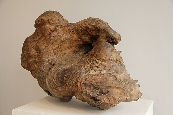 Скульптура представляет лежащую фигуру человека, выполненную на большом куске дерева. Фигура имеет свободно откинутую руку, создающую ассоциацию с крылом. Голова расположена на левом плече. Лицо округлое, с широким приплюснутым носом. Губы плотно сомкнуты и окрашены в красный цвет. Глаза большие и прикрыты веками. Пышные волосы закрывают лоб. Основной материал имеет желтоватый оттенок. Размеры произведения составляют 70×97×77 см.