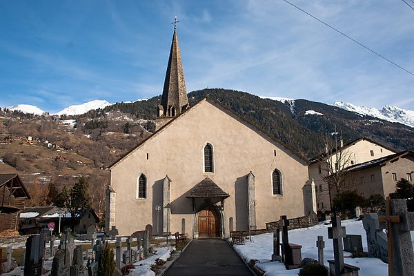 - Приходская церковь Святого Маврикия. Колокольня датируется 1488—1534 годами, она построенная мастером-каменщиком Жаном Воле-Дюнойе. Ребристый сводчатый хор, построенный в 1503 году и перестроенный в 1534 году мастером-каменщиком Пьером Гиго, является результатом расширения старого прямоугольного хора с добавлением многоугольной апсиды. Неф, также построенный Пьером Гиго в 1519—1525 годах (явно по образцу церкви Сен-Винсент-о-Планш в Монтрё)[14], имеет три корпуса, разделенные аркадами, сводчатые с перекладинами, ключи которых украшены крестом Сен-Морис[7].