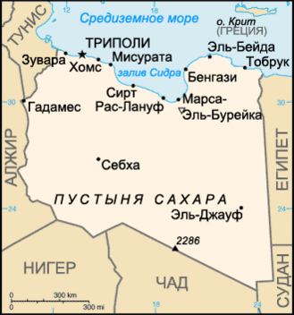 К югу и востоку от Мисураты находятся Бани-Валид и Сирт. На побережье к востоку от Сирта расположены несколько нефтеналивных портов, находящихся под контролем так называемой «Гвардии защиты нефтяных объектов» со штабом в Адждабии.