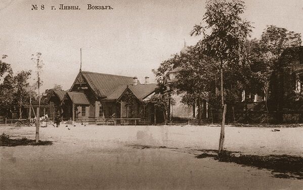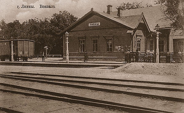 Железная дорога от станции Верховье Орлово-Грязской линии до Ливен с тремя промежуточными станциями была открыта для движения в 1871 году и стала первой в России узкоколейной (3,5 фута, или 1067 мм) дорогой общего пользования. Строительство велось С. С. Поляковым и продолжалось около года, длина пути без учёта разъездов составила 57 вёрст (62 км). Уже в 1872 году по дороге было перевезено 3,96 млн пудов (64,9 тыс. т) грузов и 35,4 тыс. пассажиров. В 1898 году линия была перешита на стандартную широкую колею, одновременно построено её продолжение до станции Мармыжи Киево-Воронежской дороги[57].