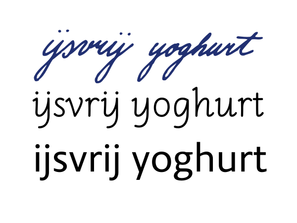 - А вместо Æ (при этом фонемы /а/ и /æ/ на письме не различаются, что может вызывать проблемы понимания);