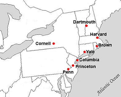 - Дартмутский колледж (англ. Dartmouth College) — Хановер, штат Нью-Гэмпшир, основан в 1769 году;
