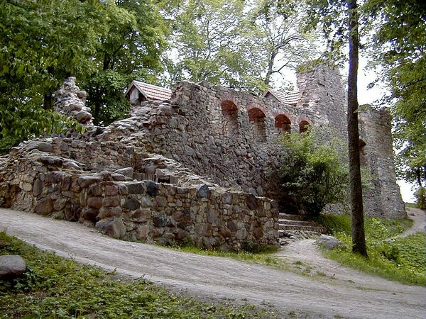- Хорошо отреставрированные развалины замка, которые были законсервированы в 1987 году по проекту архитектора Г. Эрдманиса[7].