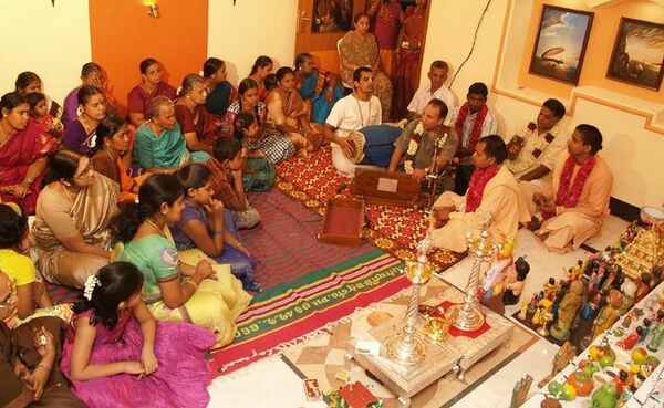 Общие встречи завершаются раздачей прасада — благословлённой пищи. В некоторых традициях по окончании встреч участники простираются перед божеством и друг перед другом, а также катаются по полу по часовой стрелке вокруг мурти или другого священного объекта, олицетворяющего Бога. В завершении поклонения преданные выражают смирение и в знак любви обнимают друг друга. Все вместе это поддерживает в последователях чувство удовлетворения и блаженства, которое стоит за воспеванием лил и имён Бога[5].