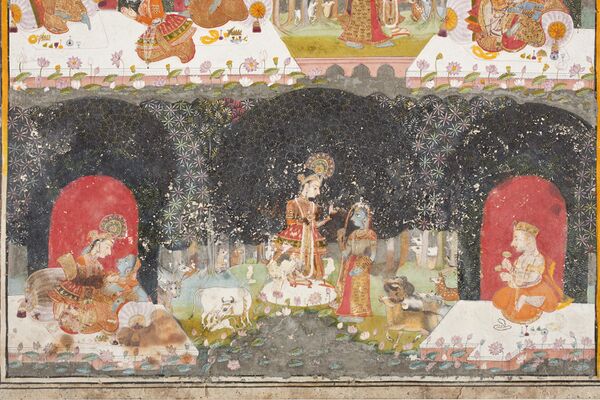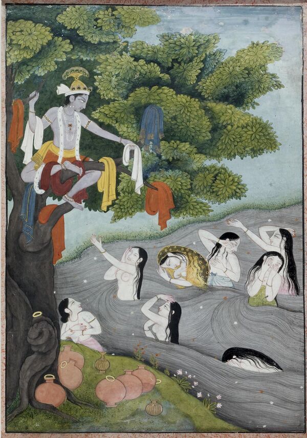 Юная [пастушка] восхваляет его и, увлеченная, любовно танцует с Хари в раса-лиле под свирель, сладким звукам которого вторит ряд браслетов, дрожащих от хлопанья в ладоши. — Хари развлекается здесь в игривой, веселящейся толпе юных, прелестны жен[6].
