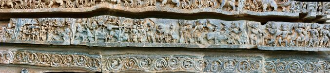 Каменный барельеф с изображением раса-лилы в шиваитском храме Хосайлешвара. Карнатака, XII век.