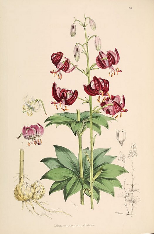 После посева из семени лилии уже в первый год образуется маленькая луковичка, которая усиливается и разрастается в течение трёх, четырёх, шести и даже семи лет, не принося цветоносного стебля, и, только получив окончательные размеры, пускает воздушный стебель, приносящий цветки; с этого момента она уже ежегодно пускает всё более и более сильные стебли.