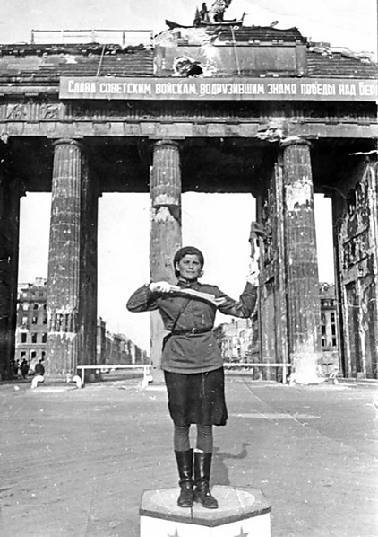 Была запечатлена Евгением Халдеем на фотографии, на которой она регулировала движение у Бранденбургских ворот.