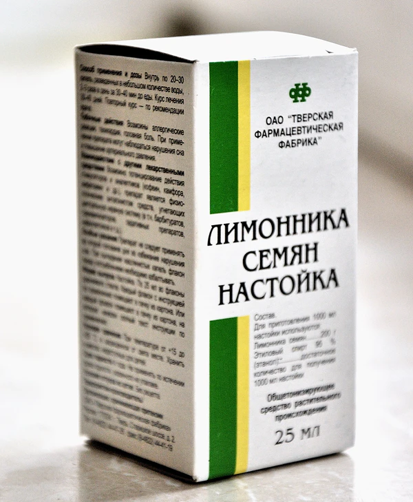 Действующие вещества лимонника являются физиологическим антагонистом лекарственных средств снотворного действия и препаратов, угнетающих ЦНС (в том числе барбитуратов, транквилизаторов, противоэпилептических, седативных средств, нейролептиков). Усиливают действие психостимуляторов и аналептиков (в том числе кофеина, камфоры, фенамина).[12]