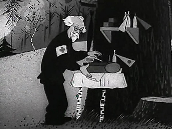 В этом и должен заключаться истинно советский стиль детского мультфильма. Всех героев, изображаемых в этом фильме, любишь. Доктор Айболит смешноват, чудаковат, но он раньше всего умилителен. Он типичный советский доктор — самоотверженный, гуманный, готовый отдать жизнь за своих пациентов. А как поэтично море, изображенное этими художниками, как поэтична та русская вьюга, которая мешает доктору добраться вовремя до его пациентов. .