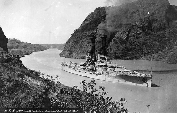 Линкор «Норт Дакота» был заложен 16 декабря 1907 года на верфи «Фор Ривер Шипбилдинг компани» в Куинси. Корабль был спущен на воду 10 ноября 1908 года и вошёл в состав флота 11 апреля 1910 года на церемонии в Бостоне. Первым командиром корабля был назначен коммандер Чарльз П. Плакетт[26][27].