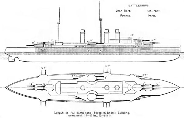 Дредноуты типа «Курбэ» появились в период кризиса французского военного флота, когда Франция с трудом осознавала свой переход от статуса второй по силе морской державы к существенно более скромному положению пятой[3]. Это отразилось и на первых французских дредноутах; построенные исходя из неадекватно проанализированного мирового опыта, они были добротными, но ничем не примечательными кораблями, уступающими многим современникам.