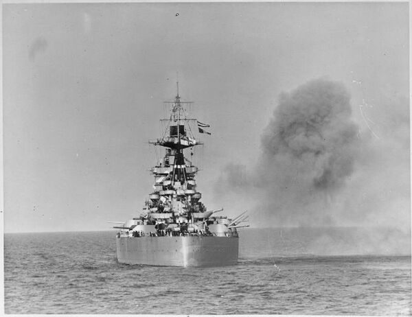 К концу 1945 года на линкоре было 44 40-мм «Пом-Пома» (5×8 и 1×4)[47] и 69 20-мм «Эрликонов» (5×2 и 59×1)[42].