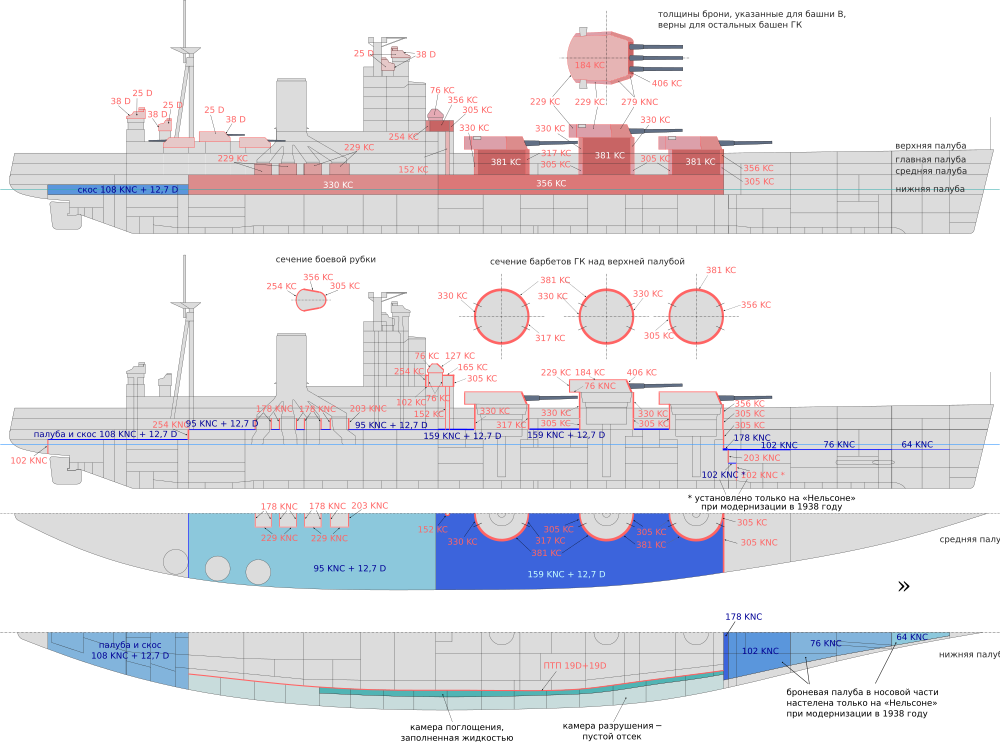 | Барбеты башен ГК, мм. | 330 | 305 | 381 | |||||