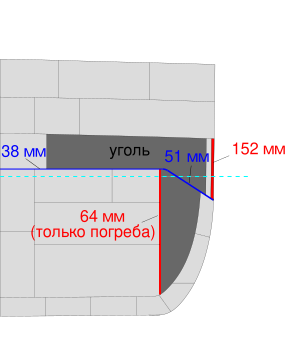| Пояс | 203 | 250 | 178 | 152 | 152 (203 в районе барбетов) |