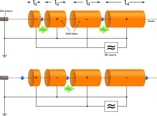 По принципу работы линейные ускорители могут быть прямого действия, индукционные или резонансные.