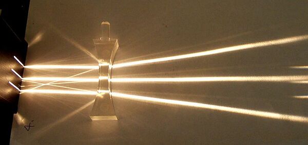 Отличительным свойством собирательной линзы является способность собирать падающие на её поверхность лучи в одной точке, расположенной по другую сторону линзы.